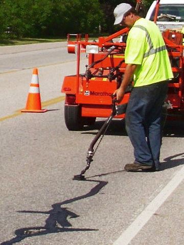 Fill cracks in your asphalt to prevent water penetration. In summer, water will saturate and wash out sub-bases. Over time this will cause cracks to get larger and often times creates crumbling asphalt and potholes. In winter, water will freeze and cause heaving of the pavement, resulting in further cracking and deterioration.